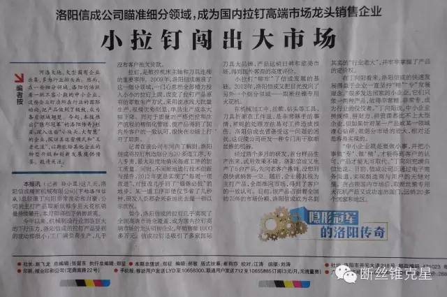 2015年7月24號,名聲在外的信成迎來了《洛陽日報》的來訪,總經理丁向陽接受了記者的專訪,登上洛陽日報專題報道: