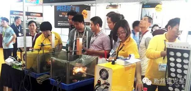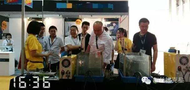 很多人駐足在展位前,爭相觀看取斷絲錐電火花機的操作演示。