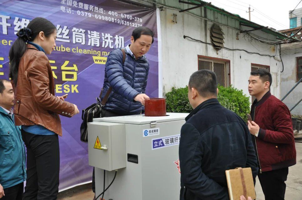 3月15日上午,九江華雄玻纖王總、振華玻纖張總、愛民玻纖顧總一行3人蒞臨洛陽信成精密機械有限公司,考察玻纖繞絲筒清洗機。信成公司總經理丁向陽、副總經理常俊杰、總工藝師林衛等陪同客戶在洗筒機零部件的生產車間和組裝車間進行了參觀并進行了講解。三位老總認真的聽取了公司負責人的介紹,并就感興趣的問題不時的進行詢問。當他們了解到,公司洗筒機零部件都進行了激光打標以及公司產品出口到美歐等20余個發達國家時,直呼信成的產品精致制造,讓人放心!他們表示,返廠后將進行采購!洛陽信成,值得信賴的合作伙伴!