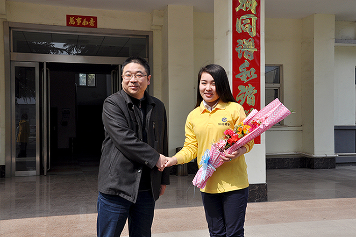 3月21日下午,總經理丁向陽帶領銷售財務部及辦公室全體在崗人員,帶著鮮花在辦公樓前熱情迎候載譽歸來的信成戰士。在隊長黃利利的帶領下,劉向前、侯小紅、牛海波笑容滿面地走下公司的奔馳汽車,向迎接他們的公司領導和同事熱情握手致意。