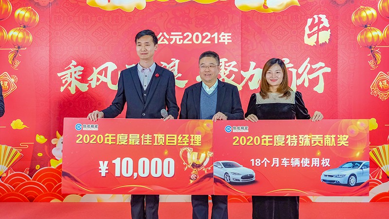 董事長丁向陽先生親自頒發(fā)給王浩“項目經(jīng)理獎”,兌現(xiàn)了公司在年初的承諾;授予副總經(jīng)理袁曉輝女士“年度特殊貢獻(xiàn)獎”——寶馬(或特斯拉)18個月車輛使用權(quán),令袁總激動不已。