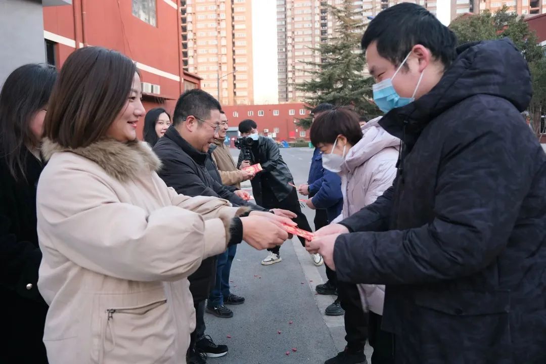 瑞兔捧金日,財(cái)源廣進(jìn)來(lái)。丁向陽(yáng)董事長(zhǎng)帶領(lǐng)信成高管團(tuán)隊(duì)向員工們發(fā)放開(kāi)班紅包。