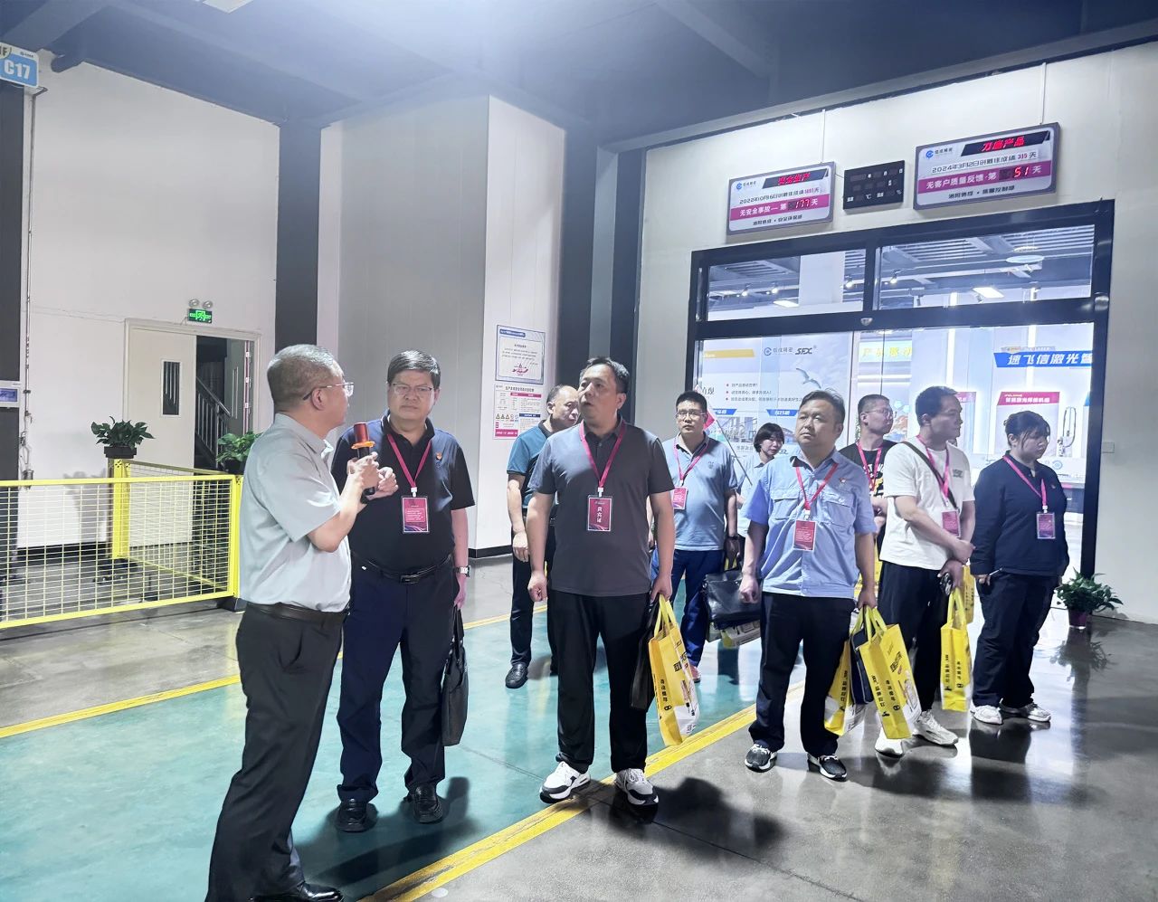 座談會(huì)后,與會(huì)嘉賓根據(jù)參觀證顏色,分為五隊(duì),在五色小旗引導(dǎo)下,分批次參觀了綜合樓展廳、裝配車間機(jī)電產(chǎn)品線、銑加工車間、速飛信激光智能裝備有限公司、車加工車間核心生產(chǎn)區(qū)域。每個(gè)參觀點(diǎn)均設(shè)有專職講解員、演示員,詳細(xì)介紹了公司情況,讓嘉賓們短時(shí)間內(nèi),對(duì)信成公司產(chǎn)品使用、生產(chǎn)管理、技術(shù)實(shí)力和生產(chǎn)規(guī)模有了更加直觀的了解。