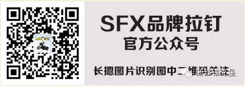 掃碼關注SFX品牌拉釘訂閱號、斷絲錐克星服務號,并把此信息轉發到朋友圈,可到E4-B11展位***取價值35元SFX品牌拉釘壹支。