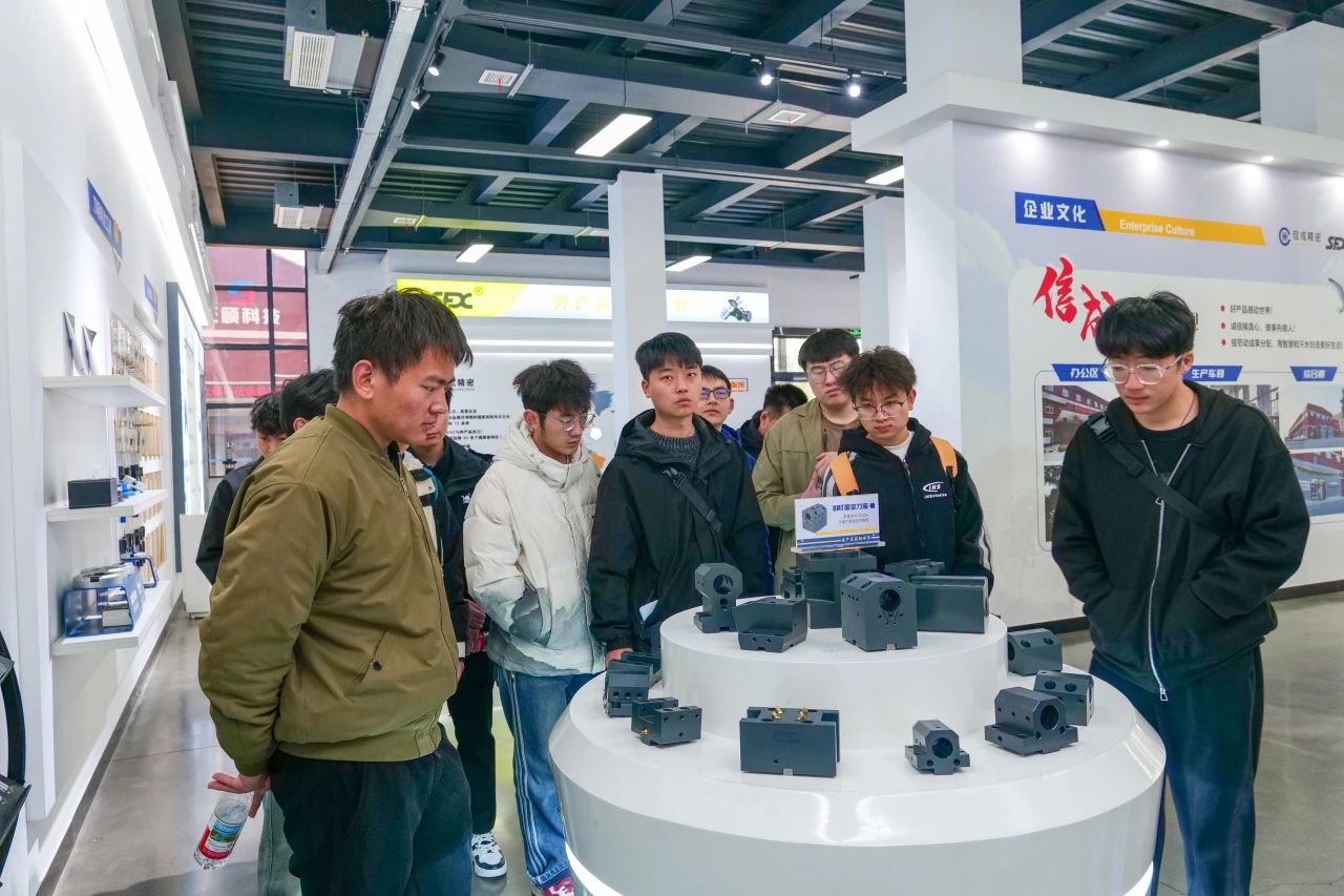 參觀隊伍分成了三隊,每個參觀點都配備了***的地接講解員和演示員,在三色旗幟的***下,同學們開啟了車間探秘之旅。