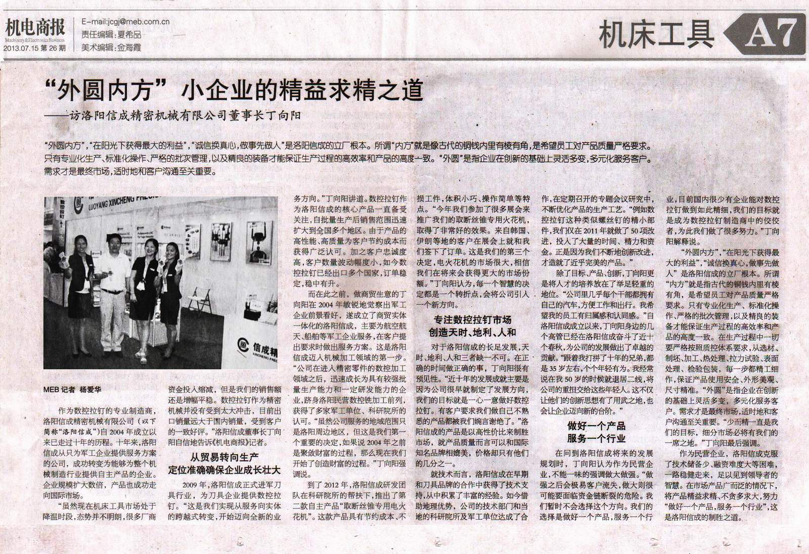 機(jī)電商報(bào):訪洛陽信成精密機(jī)械有限公司董事長丁向陽
