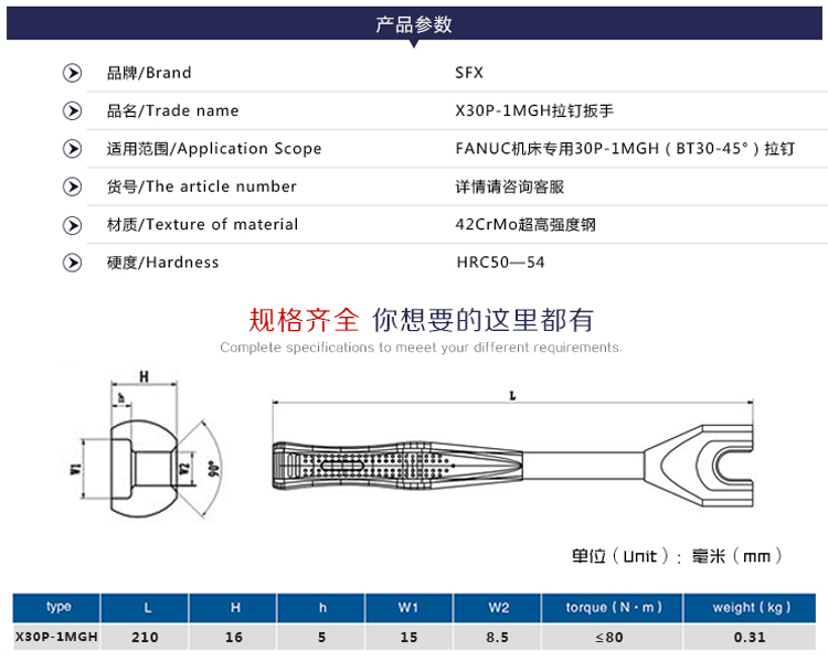 拉釘扳手X30P-1MGH(631865-30)刀柄周邊工具 簡(jiǎn)介:適用于FANUC機(jī)床專用30P-1MGH(BT30-45°)拉釘 咨詢熱線:400-6700-379 留言給我們 產(chǎn)品詳細(xì) 上一篇:HSK冷卻液套管63 2880-63/100 下一篇:滾針螺母扳手NSG35 632754-35