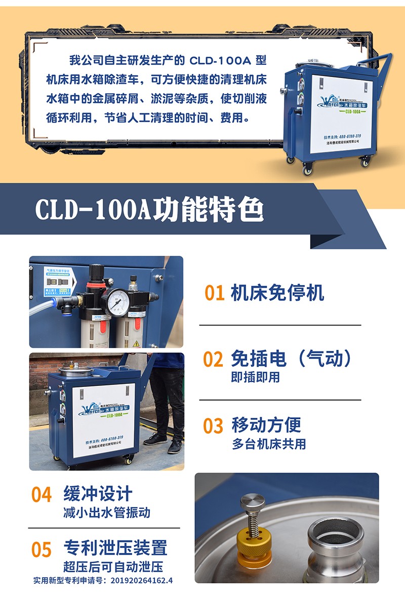 - 簡介:有效清理機(jī)床水箱的金屬/非金屬碎屑 機(jī)床免停機(jī),無耗材, 免插電(氣動(dòng)),快速清理 配萬向輪,移動(dòng)方便
